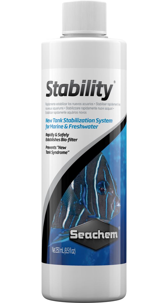 Seachem Stability הוא אחד מתוספי הבקטריות הפופולריים ביותר לאקווריומים חדשים וותיקים. הוא מכיל שילוב של בקטריות אירוביות, אנאירוביות ופאקולטטיביות שמקימות במהירות את הפילטר הביולוגי ומסייעות בפירוק אמוניה, ניטריט, ניטראט ופסולת אורגנית.